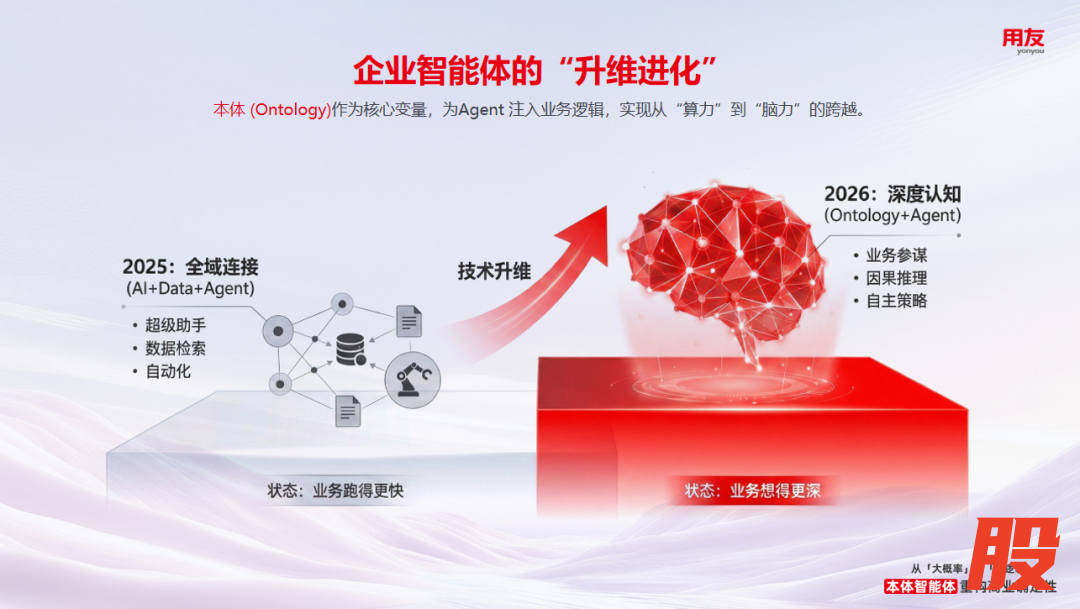 2026年伊始,用友率先引领中国企业软件的AI技术升维,在业界重磅发布BIP“本体智能体”(Ontology-Driven Agent),将企业AI的核心从“概率生成”转向“逻辑执行”,以业务确定性为内核,首次系统化构建了一套面向未来的企业智能新基座,为企业高质量应用AI提供破局之道。