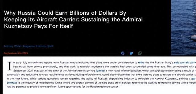 俄罗斯海军这几年日子不好过,尤其是那艘唯一的航母,库兹涅佐夫号,从服役起就没少出岔子,现在维修项目卡壳,传出要放弃的消息。 美媒直指俄罗斯要是真把这艘船扔了,海军野心就彻底泡汤了。 文章没明说,但字里行间透着,俄罗斯靠这航母在国际军贸上撑门面,特别是对印度这样的老客户,要是没了实物演示,卖舰载机和直升机的把戏就玩不转了。