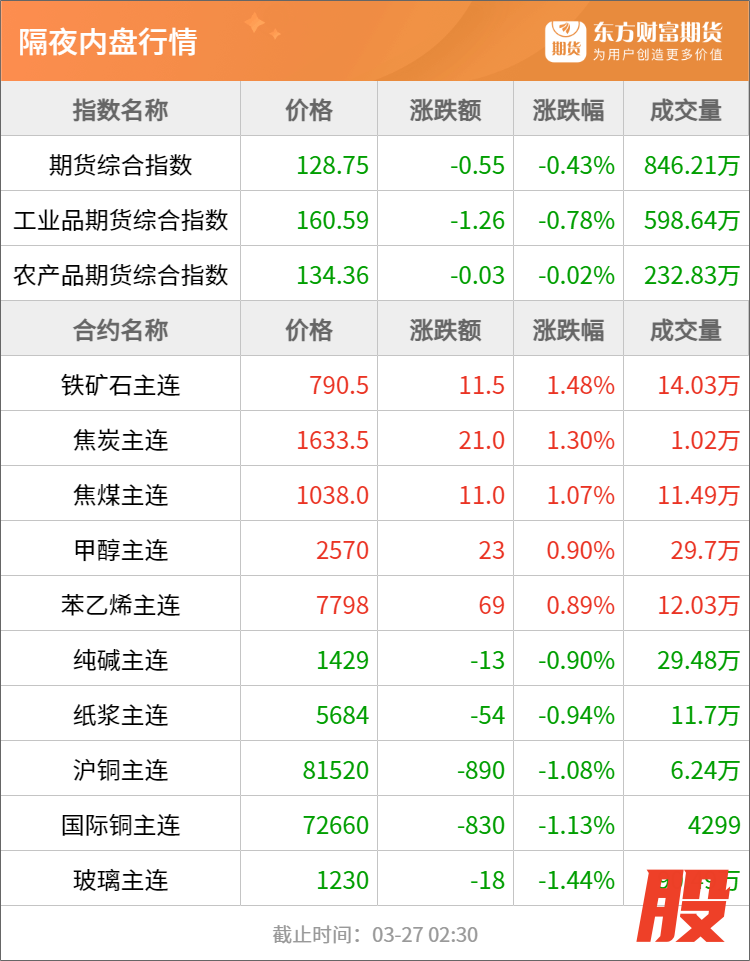铁矿石:南钢股份(600282.SH)3月26日在投资者互动平台表示,全球铁矿石正处于产能释放阶段,铁矿石供需趋于宽松。同时,铁矿石价格受阶段性供需关系等因素影响较大。(每日经济新闻)